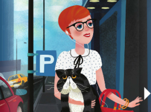 Ve městě stojí mrakodrap a v něm jsou samé kanceláře. V jedné z nich pracuje slečna Kamilka. Na všechny se usmívá a každý den s sebou do práce bere svého kocoura.