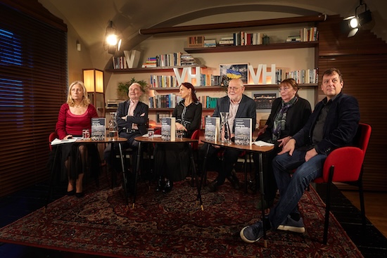 zleva Denisa Novotná, Timothy Garton Ash, Kateřina Výborná, Veronika Maxová, Jaroslav Veis a Rani Tolimat