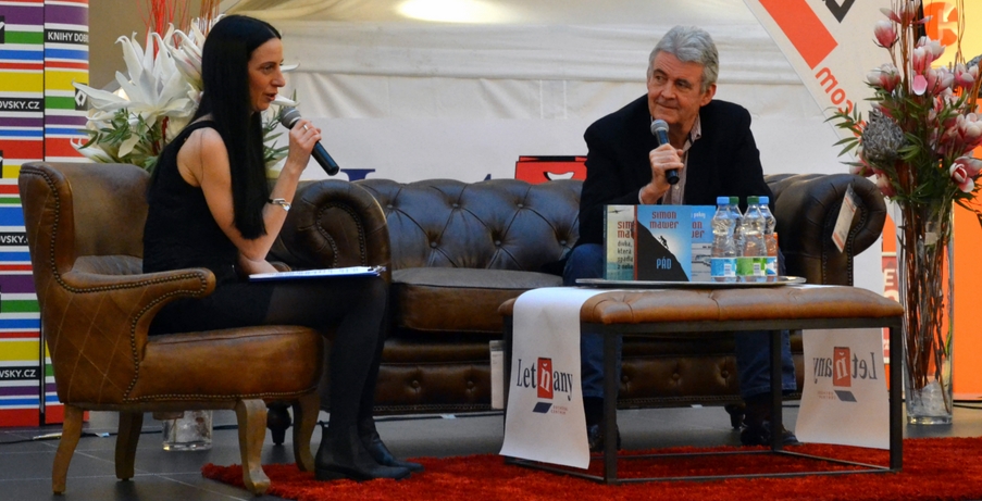 Simon Mawer s moderátorkou.