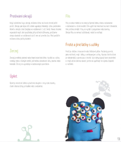 První knížkou potěšíme všechny, kteří rádi tvoří pro nejmenší. Titul Sešívané příšerky od Julie Mayerové přináší návody na ušití úžasných příšerek a strašidel, které si děti zamilují. Knihu vydalo nakladatelství Grada.