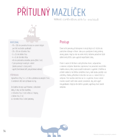 Vítejte ve světě monster a vesmírných příšer. A všechny si je dokážete ušít! V knize s podrobnými pokyny a dvěma přílohami se střihy ve skutečné velikosti jich je ještě mnohem více. I začátečníci si najdou svůj oblíbený model. Nevadí, že naše příšerky nebudou dokonalé. Vždy ale budou rozkošné a připravené k mazlení. A je jedno, zda se rozhodneme vyrobit Skřítka pohodáře či trochu nazlobeného Ušouna, anebo dáme přednost elegantní příšerkové broži. A když nás někdy rozbolí břicho, pomůže hřejivý Peckoun. V zimě zase oceníme pomoc Chlupatých příšerných bačkor. Příšerky jsou zkrátka neodolatelné. Uvnitř knihy je ukryto spousta nápadů na šití a zdobení příšerek. Každý návod obsahuje podrobné pokyny, jak dosáhnout při tvorbě nedokonalých příšerek dokonalosti. Hodně zábavy a radosti z tvorby!