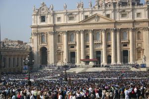 Kardinálové se shromáždili v Sixtinské kapli. Davy lidí na náměstí Svatého Petra očekávají kouř, jehož barva bude znamením, zda byl či nebyl nový papež zvolen. Bílý kouř vyvolává nadšení. Na balkoně se objevuje protodiakon (první jáhen) a oznamuje: Habemus papam! Máme papeže! Lid jásá a očekává příchod nové hlavy církve, papeže, který si zvolil jméno František. To na počest sv. Františka z Assisi. Sám papež vysvětluje: