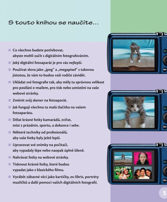 Tento průvodce světem digitální fotografie je určen pro ty z vás, kteří se chtějí svými snímky hlavně bavit. Kromě základních fotografických technik a postupů vám kniha nabídne i řadu tipů a projektů pro zpracování vlastních nápadů. S digitálním fotoaparátem a inkoustovou tiskárnou můžete vyrobit zábavné dárky, včetně peněženky, bláznivých kartiček, obálek či portrétů domácích mazlíčků. Hezky se bavte!