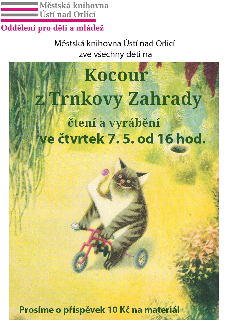 Městská knihovna Ústí nad Orlicí pořádá čtení a vyrábění pro děti na motivy knížky Zahrada od Jiřího Trnky.